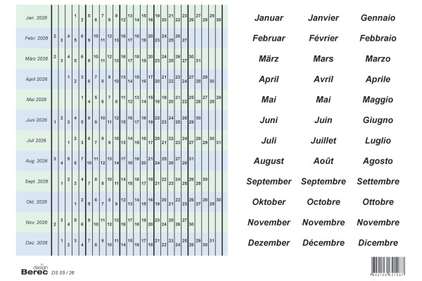 BEREC Datumsstreifenset 2026 DS05/26 selbstklebend 5-Tage-Woche
