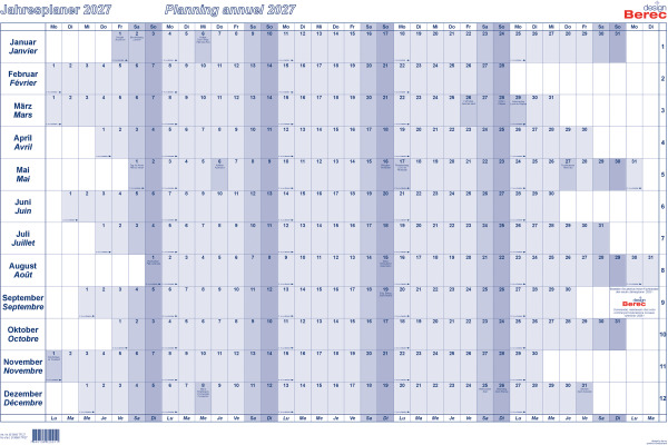 BEREC Jahresplaner quer 2027 5666TF/27 1J/1S blau plastifiz. 60x90cm