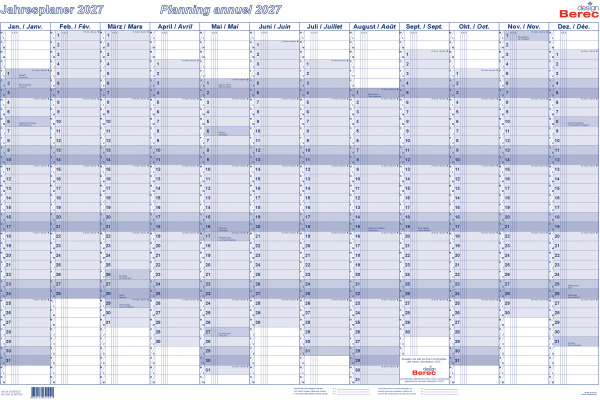 BEREC Jahresplaner quer 2027 B 5670/27 1J/1S blau 60x90cm