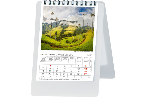 Der Biella Pultbildsteller bringt Farbe und monatliche Abwechslung in Ihre Monatsplanung. Jede Seite enthält nebst einem Kalendarium 1 Monat pro Seite ein anderes themenbezogenes Bild.