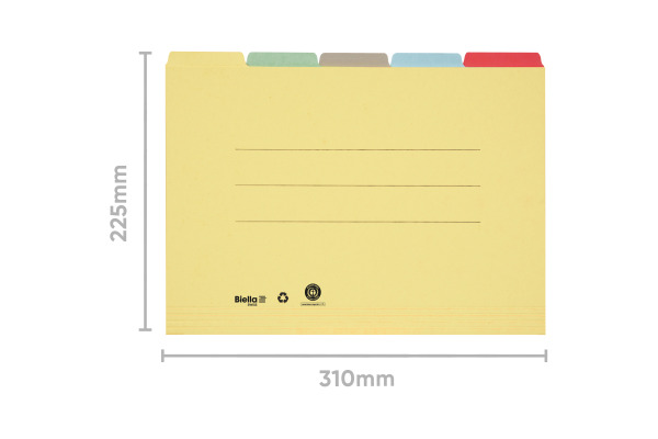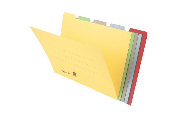 Mit der praktischen 5-teiligen Registermappe von BIELLA ist eine optimale Organisation innerhalb einer ORIGINAL®-Hängemappe garantiert. Mit ihren 5 verschieden farbigen Mappen und ausgerüstet mit versetzten Registertaben, finden Sie Ihre Unterlagen mit einem Griff. Die einzelnen Mappen sind optimal als Teilprojekte-Mappen geeignet, universell einsetzbar und schaffen Ordnung und Übersicht. Der zurückgeschnittene Vorderdeckel vereinfacht die Entnahme der Dokumente. Die Mappen sind mit 3 Beschriftungslinien und 5 Rillen ausgestattet.