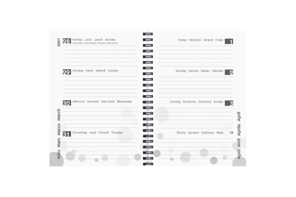 Die Biella Schüleragenda brilliert mit einem trendigen Auftritt, modernem Kalendarium, sowie durch viele Zusatzfeatures. Ideal geeignet sowohl als klassischer Terminplaner, Aufgabenheft, Tagebuch oder Kombination aus Allem. Die Ausführung 1 Woche auf zwei Seiten mit Spiral-Bindung bietet genügend Platz sowohl für schulische, wie auch private Termine und bietet Ihnen die Woche im Überblick. Format 14,5 x 20,5 cm (A5). 178 Seiten, 3½ Tage pro Seite. Einband Cylar (PP transluzent) Papier bedruckt. Kalendarium August – Juli, d-f-i-gb, Druck anthrazit. Jahres- und Monatsseiten. Eckenperforation, grosser Notizraum. Informationsteil, Schulferien Schweiz, Frankreich, Österreich, Deutschland.
