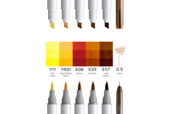 Das Zeichnen von Porträts ist nach wie vor eines der beliebtesten und am häufigsten praktizierten Themen unter Zeichnern. Vom Charakterdesign bis hin zur bildenden Kunst ist das Erfassen von Gesichtsausdrücken, Hauttönen und feinen Details eine wesentliche Fähigkeit für viele Kreative. Aufgrund der starken Nachfrage nach speziellen Porträtfarben wurde diese Kollektion entwickelt, um eine ausgewogene und vielseitige Auswahl zu bieten, die es Künstlern erleichtert, ihren Werken Leben und Tiefe zu verleihen. Die Porträt-Kollektion ist für Künstler gemacht, die gerne Porträts erstellen. Sie basiert auf einem beliebten und sofort erkennbaren künstlerischen Stil und umfasst fließende Linien, anmutige Hände, ausdrucksstarke Gesichter und komplizierte Accessoires. Jedes Set bietet eine breite Palette an kreativen Möglichkeiten. Da jeder Copic-Marker-Benutzer auch einen Fineliner für Konturen und präzise Details benötigt, haben wir jedem Set einen Copic Multiliner beigefügt. Mit der farblich abgestimmten Tinte lassen sich unsichtbare oder nuanciert realistische Ergebnisse erzielen. Die Sets ermöglichen so auch subtile, kontrastreiche Kombinationen mit Linien und Farben.