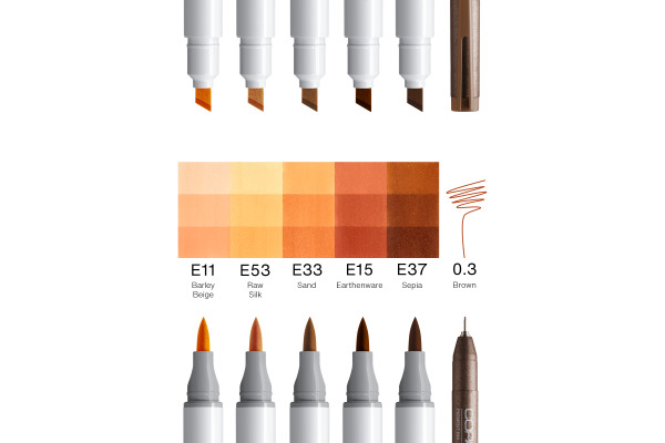 Das Zeichnen von Porträts ist nach wie vor eines der beliebtesten und am häufigsten praktizierten Themen unter Zeichnern. Vom Charakterdesign bis hin zur bildenden Kunst ist das Erfassen von Gesichtsausdrücken, Hauttönen und feinen Details eine wesentliche Fähigkeit für viele Kreative. Aufgrund der starken Nachfrage nach speziellen Porträtfarben wurde diese Kollektion entwickelt, um eine ausgewogene und vielseitige Auswahl zu bieten, die es Künstlern erleichtert, ihren Werken Leben und Tiefe zu verleihen. Die Porträt-Kollektion ist für Künstler gemacht, die gerne Porträts erstellen. Sie basiert auf einem beliebten und sofort erkennbaren künstlerischen Stil und umfasst fließende Linien, anmutige Hände, ausdrucksstarke Gesichter und komplizierte Accessoires. Jedes Set bietet eine breite Palette an kreativen Möglichkeiten. Da jeder Copic-Marker-Benutzer auch einen Fineliner für Konturen und präzise Details benötigt, haben wir jedem Set einen Copic Multiliner beigefügt. Mit der farblich abgestimmten Tinte lassen sich unsichtbare oder nuanciert realistische Ergebnisse erzielen. Die Sets ermöglichen so auch subtile, kontrastreiche Kombinationen mit Linien und Farben.