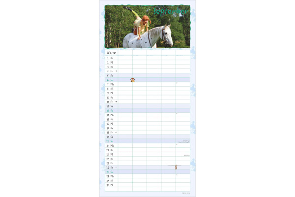 Das übersichtliche Kalendarium mit 5 Spalten zum Eintragen bietet viel Platz für Termine und Notizen.