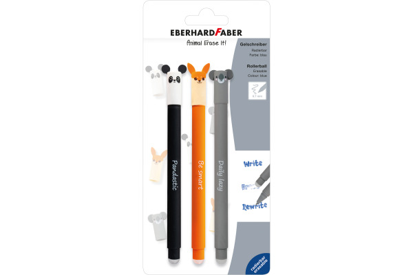 EBERHARD FABER Gelschreiber Erase It 0.7mm 582123 Animal 3 Stück