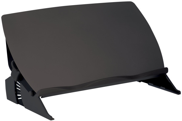 Zur Nutzung zwischen Monitor/Laptop und Tastatur • Plattform gleitet stufenlos nach vorne zur Abdeckung der Tastatur und Schaffung einer ergonomischen Schreibunterlage • In der Funktion als Sichtfeld-Konzepthalter eignet sich die Unterlage für Kataloge, Bücher und Dokumente bis 5kg • Winkel einfach von 7.5° bis 37.5° einstellbar für ein bequemes Schreiben • Herausnehmbares Zubehörfach mit Ladekabel