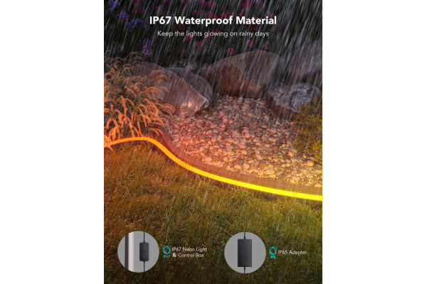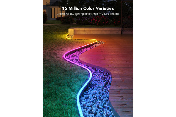 Verwandeln Sie Ihre Außenbereiche mit den Govee RGBIC Neon Rope Lights. Mit über 64 Szenenmodi und einer IP67-Waßerdichtigkeit sorgt diese vielseitige Beleuchtungslösung für ein beeindruckendes Ambiente auf Ihrer Terraße, im Garten und mehr – unabhängig von den Wetterbedingungen.