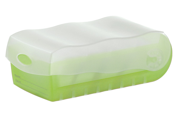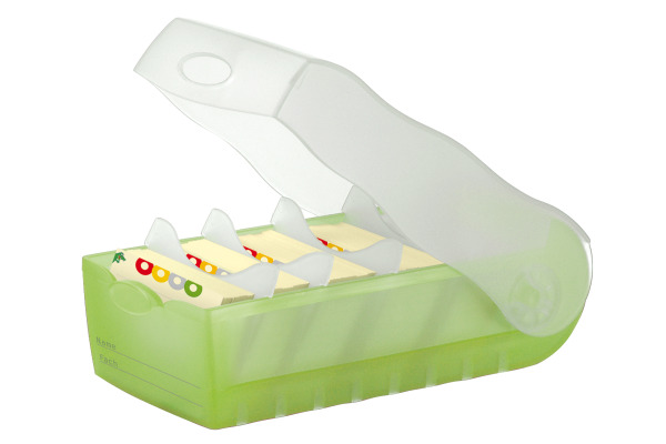 Lern- Telefon- und Karteiboxen Croco A7 • Beim Öffnen verschwindet der Deckel unter der Box, bei geschlossenem Zustand sind die Stützen arretiert • Inkl. 100 linierten Karteikarten • 5 variabler Stützplatten und grossem Beschriftungsschild • Fasst bis zu 900 Karten • inkl. 100 linierte Karten