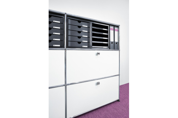 • Aussenhöhe und -tiefe sind abgestimmt auf Ordnerhöhe bzw. auf ein Ordnerfach