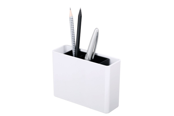 Ihre Stifte sind gut aufbewahrt in diesem formschönen und innovativen Stifteköcher. Der Stifteköcher besticht mit seinem modernen Design mit abgerundeten Ecken. Die ideale Voraussetzung für die Organisation des modernen Arbeitsplatzes.