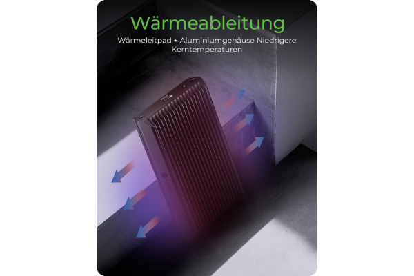 - Aluminiumgehäuse mit Wärmeleitpad zur Kühlung der SSD
