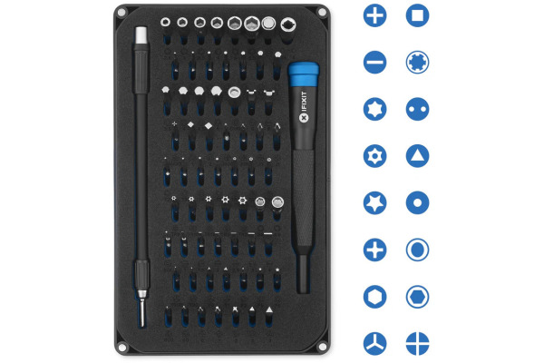Das Pro Tech Toolkit ist das Werkzeug, das jeder Heimwerker, Reparateur, Hacker, Bastler und Profi für jede Aufgabe braucht. Jedes Werkzeug im Pro Tech Toolkit wurde überarbeitet und verbessert. Vom 64-Bit-Schraubendreher-Kit bis zu den iFixit Opening Picks – jedes Werkzeug wurde speziell entwickelt und ausgewählt, um Ihre Reparaturmöglichkeiten zu maximieren. Das Herzstück dieses Kits ist das iFixit 64-Bit-Schraubendreher-Kit. Es wurde auf Grundlage umfangreicher Forschung zu den aktuell in der Unterhaltungselektronik verwendeten Befestigungsarten und den noch immer gefragten, veralteten Befestigungselementen entwickelt. Von der Apple Watch mit ihren neuen winzigen Tri-Point-Schrauben bis hin zu klassischen Nintendo-Spielkonsolen mit Gamebit-Befestigungen – das 64-Bit-Kit deckt alles mit CNC-gefrästen Bits höchster Qualität ab. Selbst das robuste Gehäuse wurde sorgfältig konstruiert, ohne Scharniere oder Verschlüsse, die abbrechen könnten, und verfügt über ein Sortierfach im magnetisch befestigten Deckel.