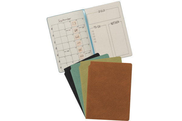 - integrierte Aussparung am Buchrücken bietet Platz für einen Kugelschreibe