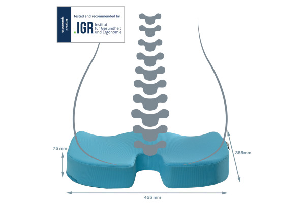 • Modernes und ergonomisch geformtes Sitzkissen für maximalen Komfort an Ihrem Arbeitsplatz auf jedem Stuhl
