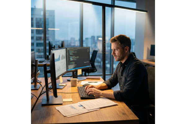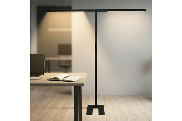 Die LED-Büro-Stehleuchte Slim Line, Duo von Luxula bietet eine innovative Beleuchtungslösung für moderne Arbeitsumgebungen. Mit einer Gesamtleistung von 90 Watt und einer beeindruckenden Lichtstärke von 5000 Lumen sorgt sie für eine blendfreie Ausleuchtung (UGR<16), die das Arbeiten angenehm und produktiv gestaltet. Die herausragende Farbwiedergabe mit einem CRI von 98 ermöglicht eine natürliche Darstellung von Farben und Materialien, was besonders für präzise Arbeiten von Vorteil ist. Die intuitive Touchsteuerung erlaubt eine einfache Anpassung der Lichtintensität und die getrennte Steuerung von Up- und Downlight sorgt für eine flexible Lichtgestaltung. Das neutrale Licht mit 4000 Kelvin fördert die Konzentration und schafft eine professionelle Atmosphäre. Die robuste Konstruktion aus Aluminium und Eisen gewährleistet eine gleichmässige Lichtverteilung und Langlebigkeit im täglichen Einsatz.