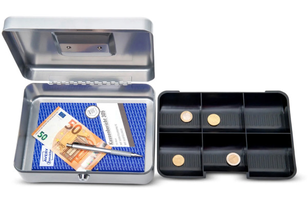 Die Geldkassette von MAUL ist aus lackiertem Stahl und hat einen Münzgeldeinsatz aus Kunststoff. Dank dem Sicherheitszylinderschloss ist Ihr Geld sicher aufbewahrt.