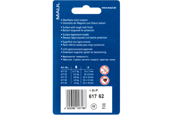 MAUL      Magnete                   20mm 6176202   weiss                  6 Stück