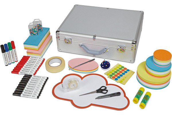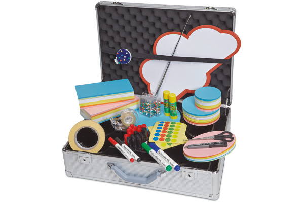 Der abschliessbare, hochwertige Aluminiumkoffer mit ergonomisch geformtem Griff besteht aus 2782 Teilen. Kein Verrutschen: Tiefgezogenes Innenteil als Ordnungssystem. Zwei stabile Kippschlösser inklusive 2 Schlüssel. Schaumstoff-Noppenpolster im Deckel mit Gummiband zur Befestigung von grossen Teilen. Mit diesem Trolley für Moderatoren-Profis gelingen Ihnen perfekt ausgestattete Workshops und Moderationen.