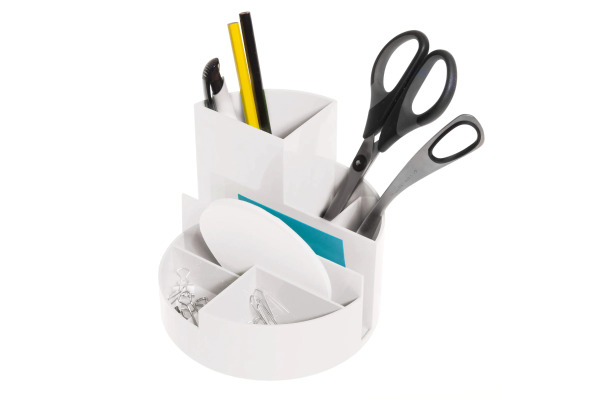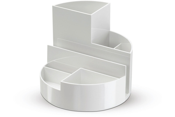 Das Original von MAUL. Ein echter Klassiker, unverwechselbar in Design und Funktion. Sorgt für Ordnung auf dem Schreibtisch im Büro und im rivatbereich. Aus schlagfestem ABS mit Hochglanzoberfläche. Mit Kartenständer/Zettelfach. Mit 6 grosszügig ausgelegten Einzelbehältern. Ø 14 cm, Höhe 12,5 cm