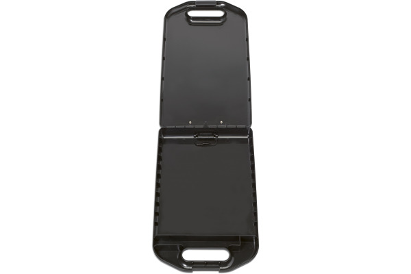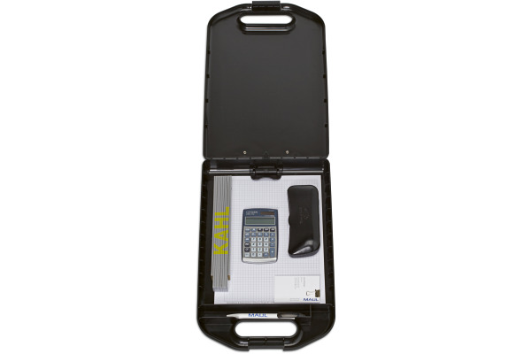 Robuste Schreibplatte und praktische separate Aufbewahrungsbox in einem. Sicher: Unterlagen stoss-, staub- und spritzwassergeschützt aufbewahren. Für alle, die unterwegs arbeiten: Handwerker, Trainer, Fahrlehrer, in Schule, Uni oder bei der Inventur. Mit praktischem Clipverschluss, stabiles Kunststoffscharnier. Klemmer aussen: Flache, stabile Bügelklemme mit Griffmulde, Klemmweite ca. 0,8 cm.