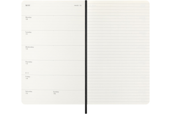 Der 18-Monate Wochen-Notizkalender von Moleskine geht von Juli bis Dezember. Mit den Wochenterminen auf der linken Seite und einer linierten rechten Seite mit Platz für Notizen und Ideen ist dieser beliebte Kalendertyp perfekt für Studenten, Lehrer und Geschäftsleute.