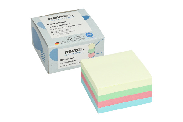 NOVOOO Haftnotizen Recycling 75x75mm 5654-88box-4 assortiert 4×100 Blatt