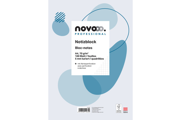 NOVOOO Notizblock weiss A4 731508 kariert 5mm, 70g 100 Blatt