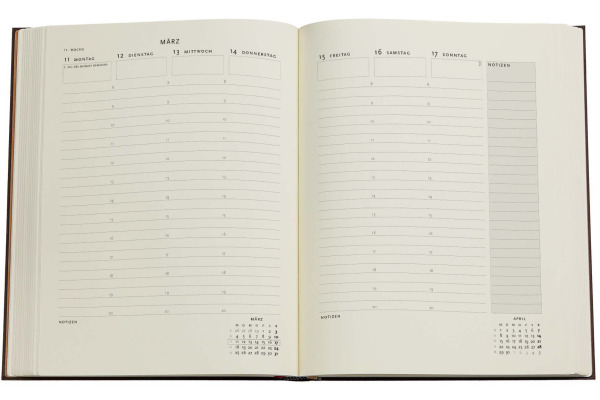 Alle Paperblanks Agenden werden mit der qualitativ hochwertigsten Bindung, der Fadenheftung, hergestellt. Die Einbandklappen bestehen zu 100 % aus Recycling-Material. Für das Schreibpapier, welches aus Zellstoff aus nachhaltiger Forstwirtschaft hergestell