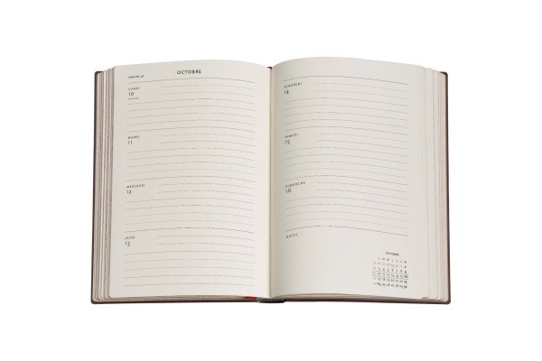 Mit Buchdeckel aus europäischem, 100% recyceltem Material. Säurefreies Papier aus nachhaltig genutzten Wäldern. Glatt gestrichenes Papier, das die Schrift sauber aufnimmt. Hochwertige Smyth-Bindung. Inkl. herausnehmbarem Adressbucheinsatz. Zwei Lesebändchen und Falt-Innentaschen.