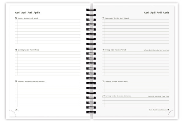 Der nachhaltige Ecoline Schülerkalender mit Recyclingkarton-Cover und Recycling-Inhaltspapier beinhaltet 160 Seiten, 1 Woche auf 2 Seiten mit 4-sprachigem Druck: Deutsch, Englisch, Französisch & Italienisch. Als praktisches Extra ist eine Notenliste und ein Stundenplan darin zu finden. Dank Twin-Wire-Spiralbindung ist die Schüleragenda langlebig und angenehm in der Anwendung.