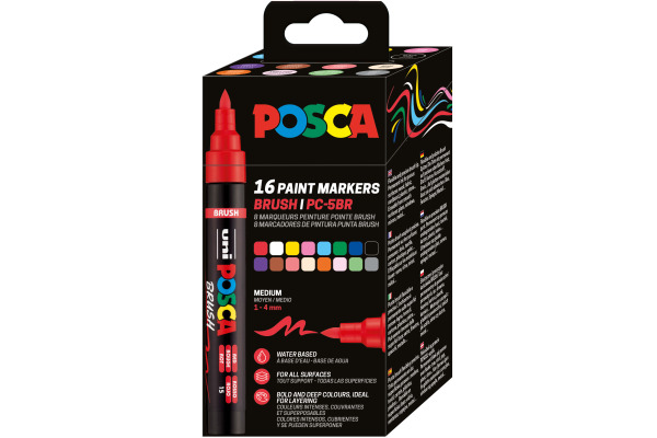 uni POSCA Brush Marker PC-5BR Set 16 Stk
