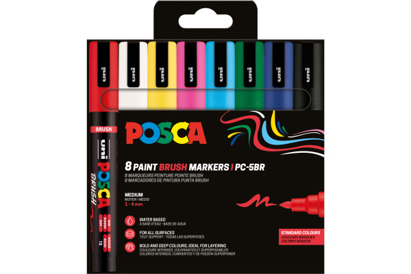 uni POSCA Brush Marker PC-5BR Basic Color Set 8 Stk