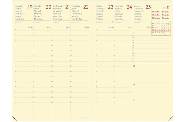 Perfektes Zeitmanagement, weniger Stress – Die Quo Vadis Büroagenda ist ein praktischer Helfer zum Planen Ihres Alltags. Da jeweils eine Woche auf einer Doppelseite sichtbar ist, haben Sie Ihre Woche stets im Griff.