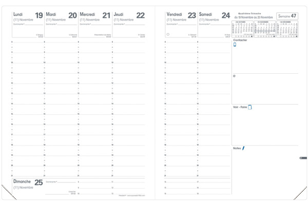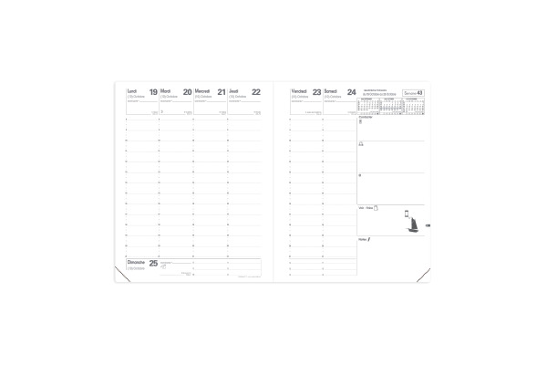 Perfektes Zeitmanagement, weniger Stress – Die Quo Vadis Büroagenda ist ein praktischer Helfer zum Planen Ihres Alltags. Da jeweils eine Woche auf einer Doppelseite sichtbar ist, haben Sie Ihre Woche stets im Griff.