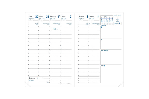 Schlichter Terminplaner mit abnehmbarer Hülle und abtrennbaren Ecken zur einfachen Orientierung.