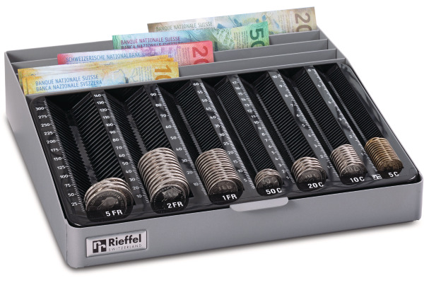Mit dem Münzeinsatz von RIEFFEL halten Sie Ihr Wechselgeld in Ordnung und haben immer einen guten Überblick.