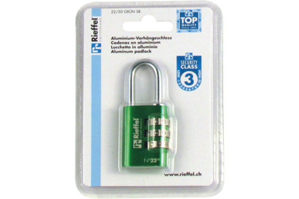 Startseite » Katalog » RIEFFEL Vorhängeschloss Nr. 22 27,5mm 22/30GRÜN grün, mit Zahlenschloss