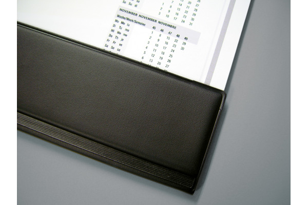 Funktionale Schreibunterlage mit schwarzer Kunststoff-Schutzleiste an der Unterkante, in hoher Papierqualität. Aktuelles 2-Jahres-Kalendarium, Tages- und Wochenübersicht mit Stundeneinteilung. Die Schutzleiste und die stabile Leimung an der Unterkante und partiell an der Oberkante verhindern zuverlässig ein Umknicken der Ecken. Sichere Planlage durch stabilen Rückendeckel.