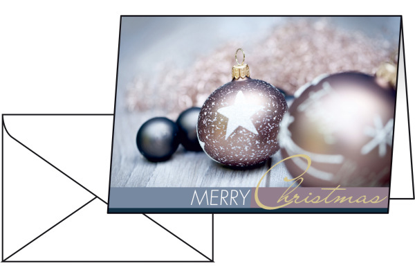 Die Karte ist mit einer glitzernden Lack- und Blindprägung versehen. Die Einlageblätter der Grusskarten sind zum Bedrucken mit Inkjet- und Laser-Drucker sowie zum Kopieren geeignet.