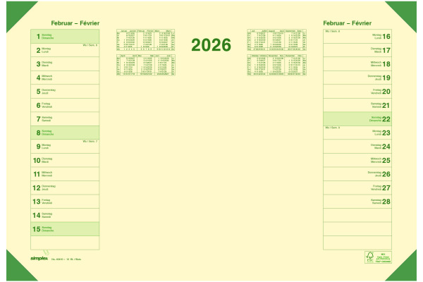 SIMPLEX Schreibunterlage 2026 40410.26 12M hellgelb DE/FR 47.7×32.5cm