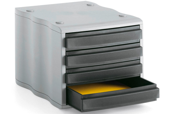 STYRO Schubladenbox styrowave 248-8500 grau/schwarz 4 Schubladen