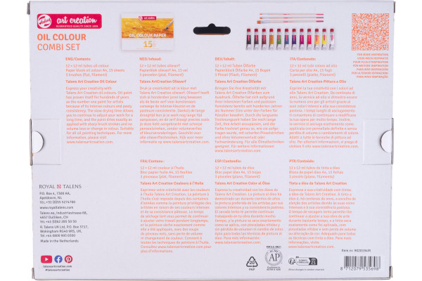 Startseite » Katalog » TALENS Öl Combi Set 12x12ml 9020194M Farbe, Pinsel, Papier