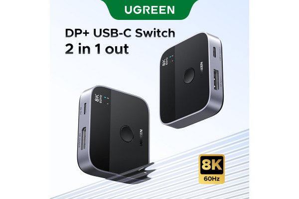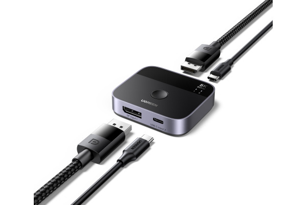 Startseite » Katalog » UGREEN Switch 2 In 1 Out 65878 DisplayPort+USB-C, Grey,BB