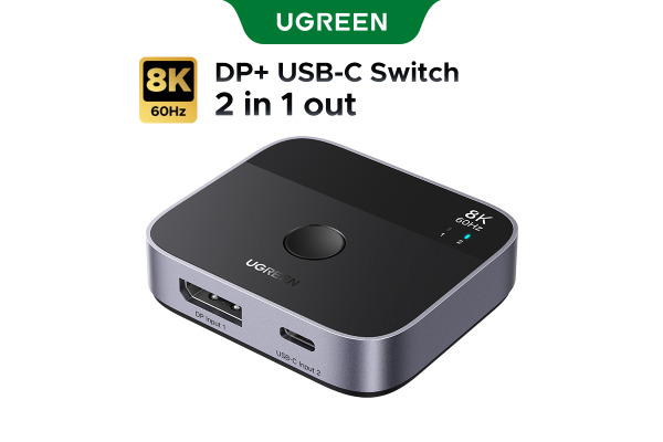 UGREEN Switch 2 In 1 Out 65878 DisplayPort+USB-C, Grey,BB